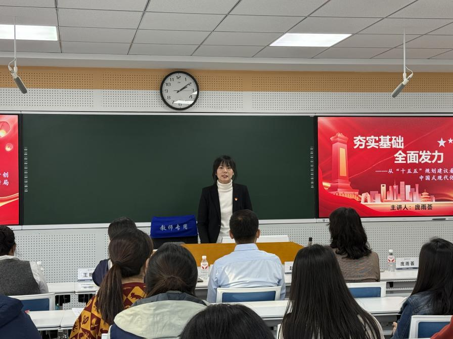 签约仪式后,马克思主义学院庞雨荟老师作《“夯实基础、全面发力”——从“十五五”规划建议看奋力开创中国式现代化建设新局》专题党课,深入解读党的二十届四中全会精神,为党员理解中国式现代化提供有力指导。
