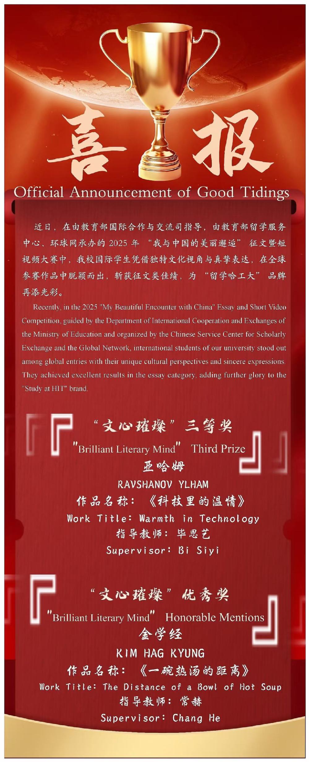 【喜报】国际教育学院师生在“我与中国的美丽邂逅”征文暨短视频大赛中喜获佳绩!