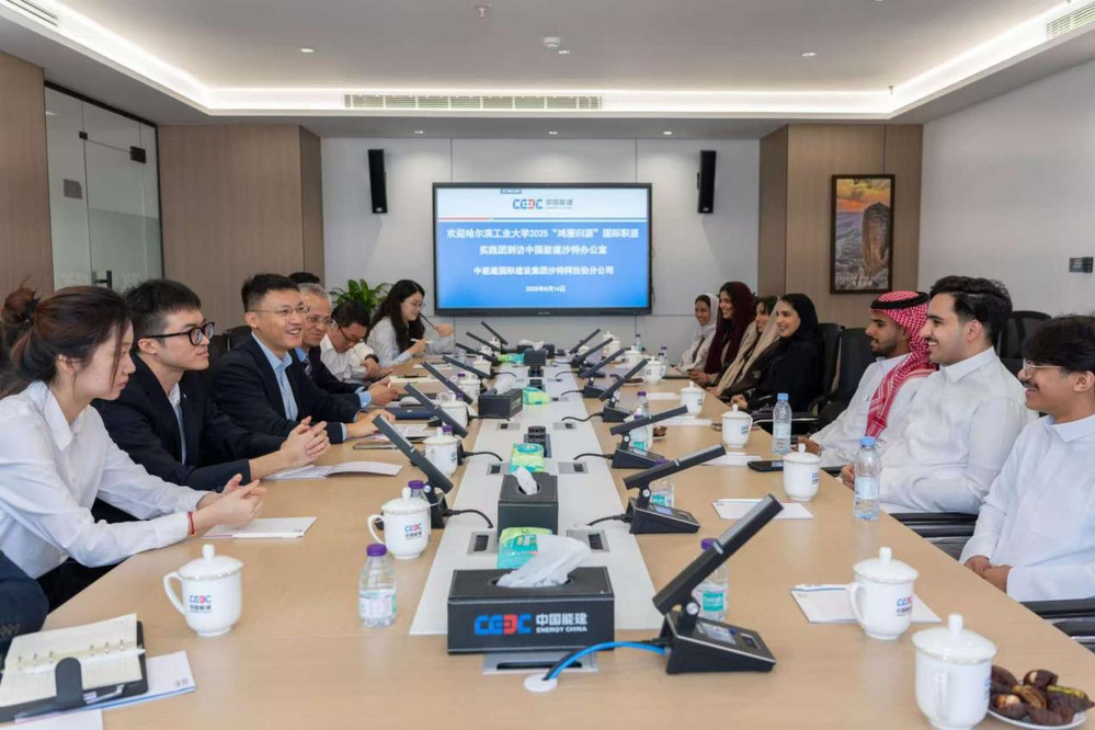 (王春泰/文)为积极响应“一带一路”倡议,深化沙特国际学生对中国新能源技术与高端制造水平的全方位认知,促进中沙青年在能源转型与工业化领域的深度对话,2025年暑假期间,哈尔滨工业大学国际教育学院组织11名沙特籍学生赴沙特首都利雅得,开展“鸿雁归源”社会实践活动。实践团先后走访中能建国际建设集团沙特阿拉伯分公司、山推中东贸易有限公司,并受邀前往中国驻沙特大使馆座谈,全方位感知中国科技与中国企业在中东地区的创新实践与责任担当。In active response to the Belt and Road Initiative, to deepen Saudi international students comprehensive understanding of Chinas new energy technologies and high-end manufacturing capabilities, and promote in-depth dialogue between Chinese and Saudi youth regarding energy transition and