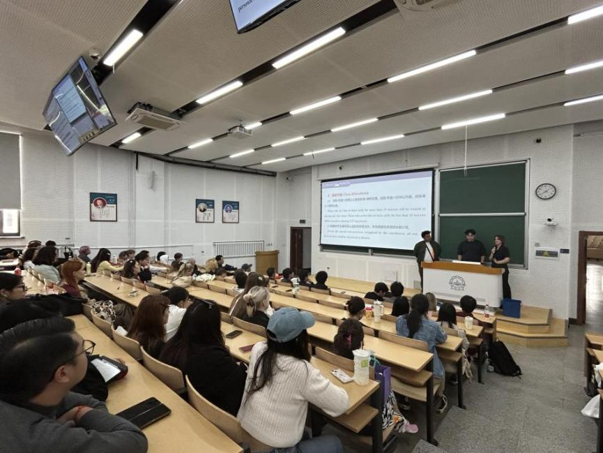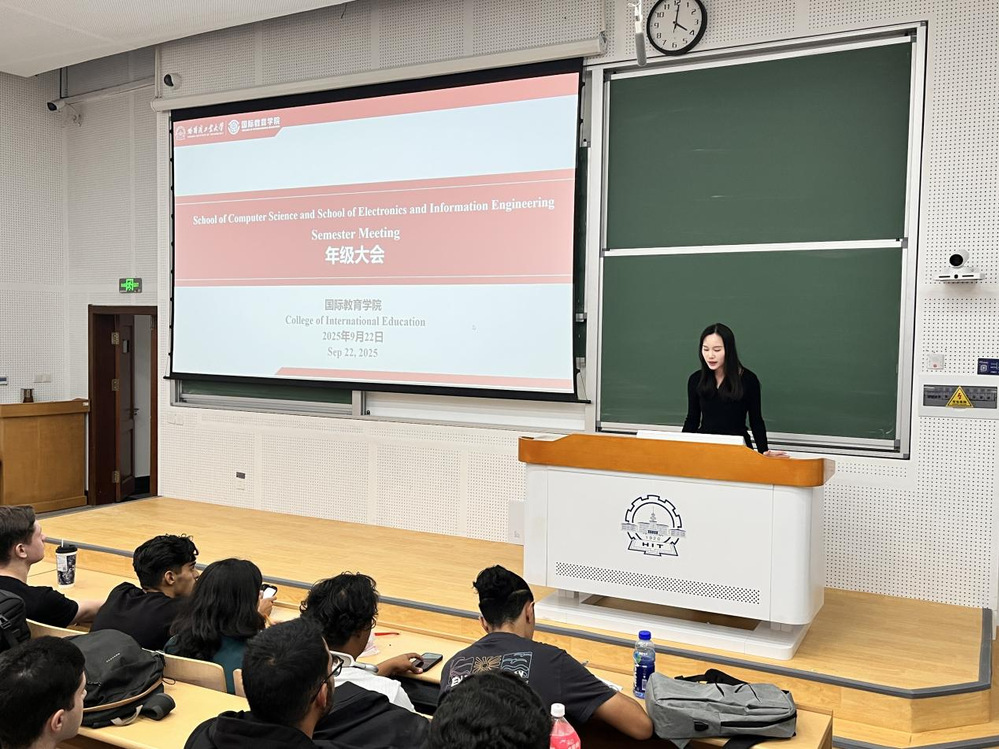 (黄梓伊/文)9月 18 日,为帮助 2025 级秋季学期全体汉语进修生深入了解校园文化、中国相关法律法规与校风校纪,顺利适应在华学习生活,国际教育学院举行汉语进修生第一次年级大会。辅导员王春泰担任年级大会主讲人,副院长赵文、辅导员温晴一同出席,并为同学们现场答疑解惑。On September 18, to help all Chinese language students in the 2025 autumn semester gain a deeper understanding of campus culture, China-related laws and regulations, as well as school ethos and discipline, and to facilitate their smooth adaptation to academic life in China, the College of International Education (CIE) held the first freshman conference for Chines