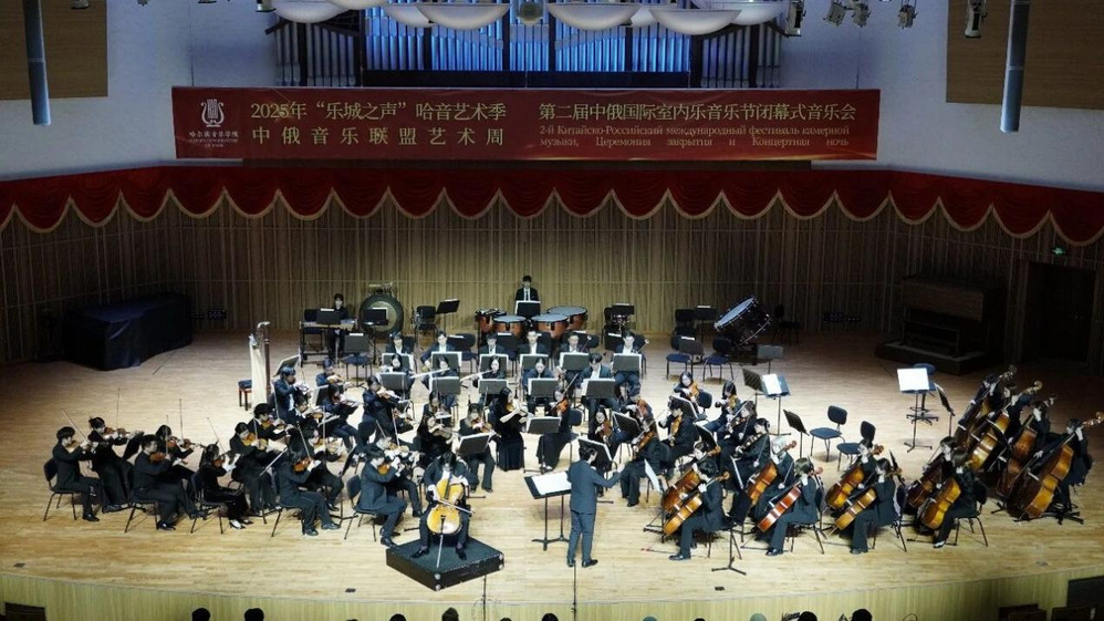 (李滢/文)为丰富国际学生文化生活,促进中外跨文化交流,12月7日至8日,国际教育学院组织来自俄罗斯、巴基斯坦、土库曼斯坦等国家和地区的七十余名国际学生,赴哈尔滨音乐学院参加第二届中俄国际室内乐音乐节,沉浸式感受中俄音乐交融的独特魅力。To enrich the cultural lives of international students and foster cross-cultural exchanges between China and othercountries, the College of International Education (CIT) organized over 70 international students from countries such as Russia, Pakistan, and Turkmenistan to attend the 2nd China-Russia International Chamber Music Festival at Harbin Conservatory of Music from December