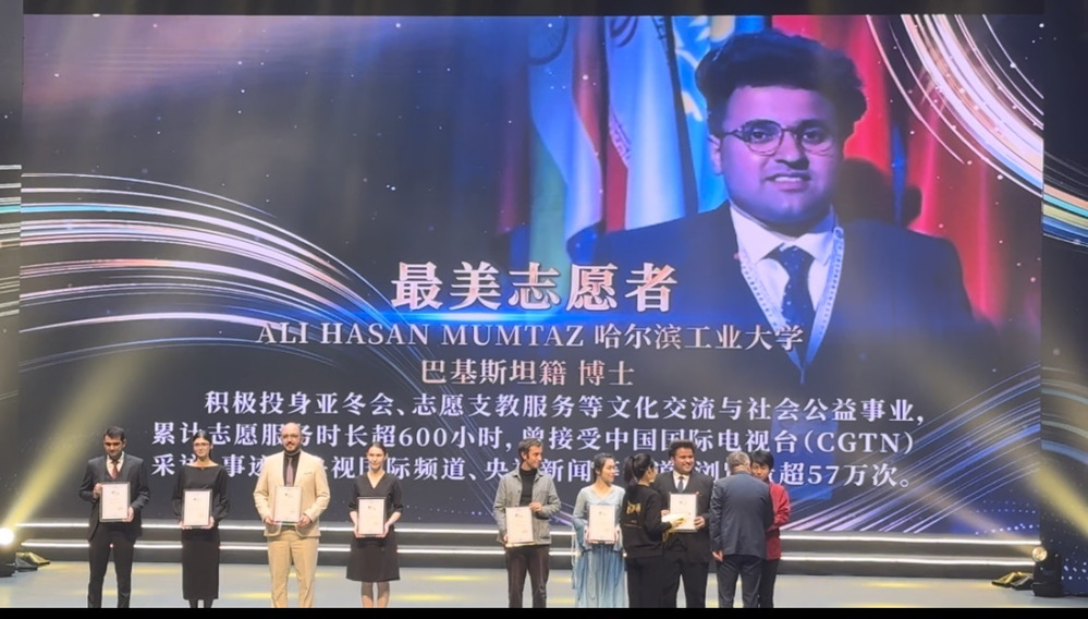12月2日,由教育部国家留学基金管理委员会主办的2025“感知中国”年度特别活动在北京隆重举行。“感知中国”是国家留学基金委精心打造的品牌活动,今年“感知中国”年度人物四个类别共有20名国际学生入选,其中“最美志愿者”仅2人。我校巴基斯坦籍博士研究生哈森(MUMTAZ ALI HASAN)获评2025“感知中国”年度人物“最美志愿者”。On December 2, the 2025 Experience China annual event, hosted by the China Scholarship Council (CSC) under the Ministry of Education, was grandly held in Beijing. Experience China is a brand event meticulously crafted by the CSC. This year, a total of 20 international students were selected across four categories for the Experien