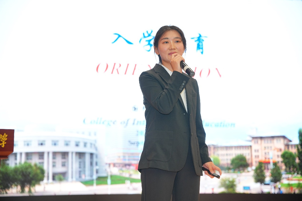 国教院来华管理部副主任卢静静为国际新生做校规校纪说明