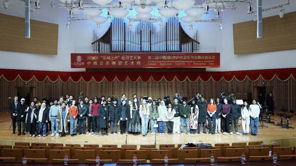 作为2025年“乐城之声”哈音艺术季的重要组成部分,此次音乐节汇聚了17个单位的45名中外知名音乐家、教育家,两场音乐会的曲目既涵盖经典名作,又兼具中外特色。中俄艺术家联袂登台,以精湛技艺演绎跨文化经典作品,旋律时而悠扬婉转,时而激昂澎湃,充分展现了音乐作为“无国界语言”的感染力。国际学生们全神贯注沉浸其中,感受中俄音乐文化的深厚底蕴与交融活力,并为演奏者们精湛的技艺报以热烈掌声。